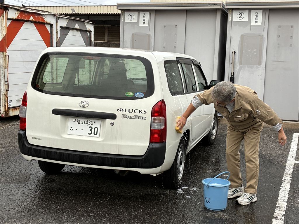 現場に行っている社員が多く、事務所にいた3名が各自の車両を手洗いしました。