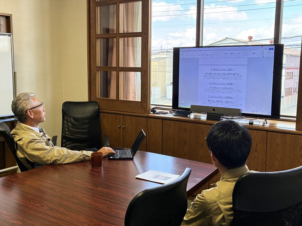 今朝10時より、昨日入社した加藤の新入社員オリエンテーションが始まりました。