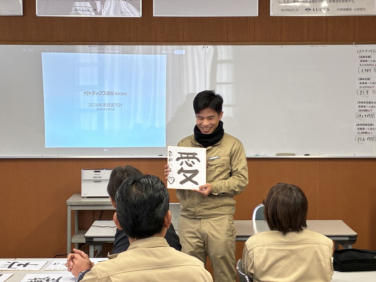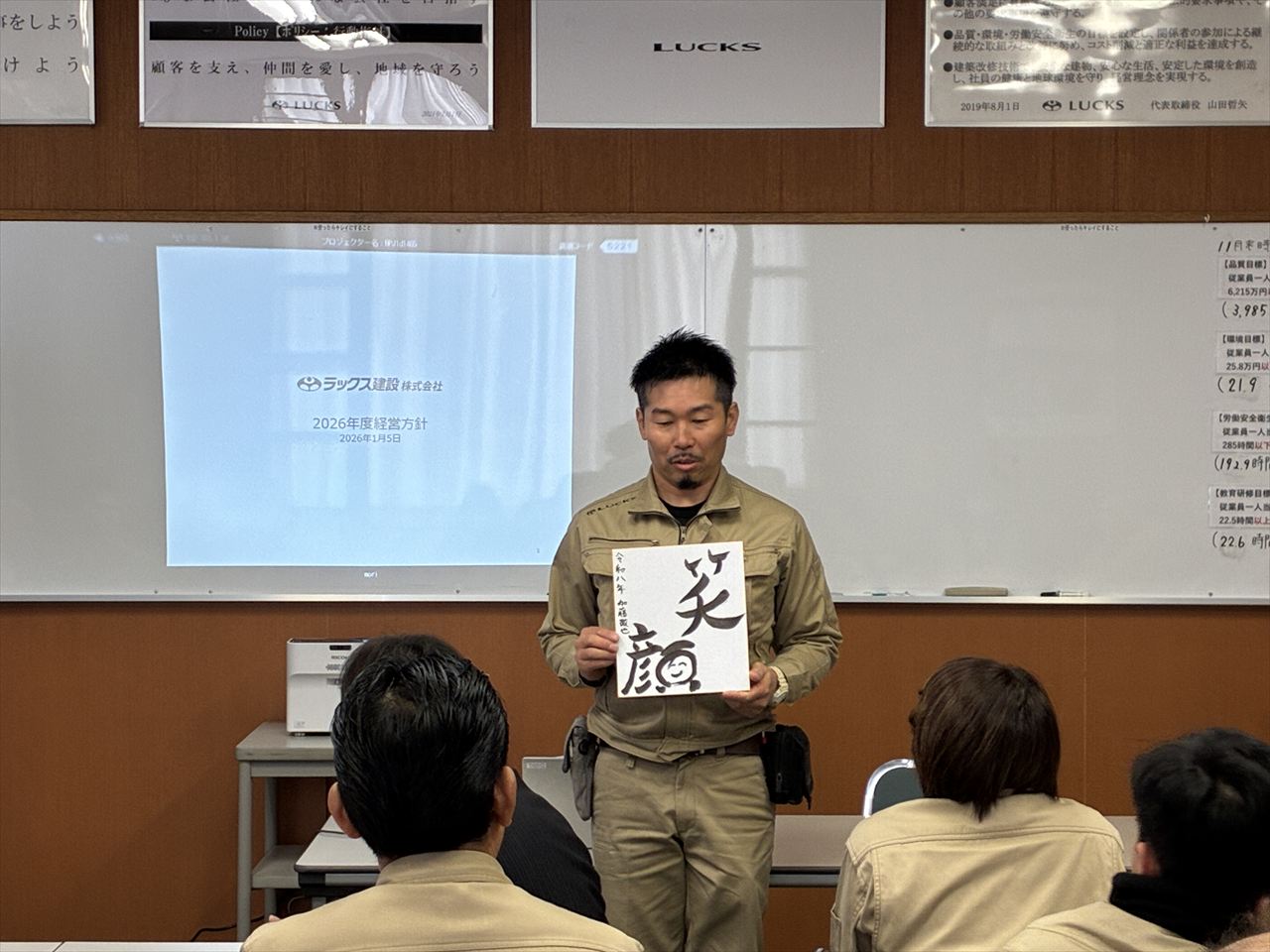 事務所に戻ってから、山田から《2026年度経営方針》の発表が行われ、昨年を振り返ると共に、今後のビジョン・経営戦略が共有されました。