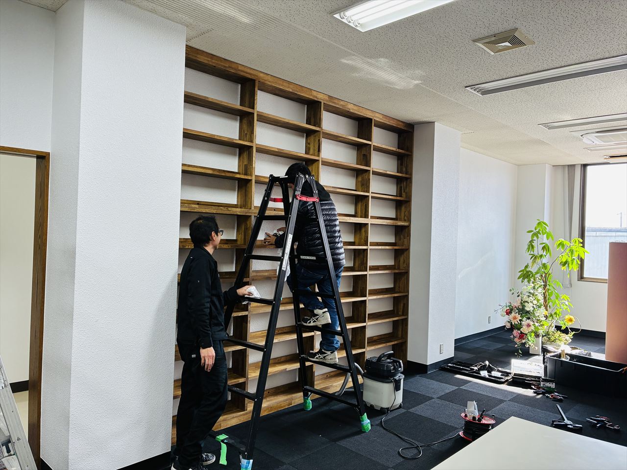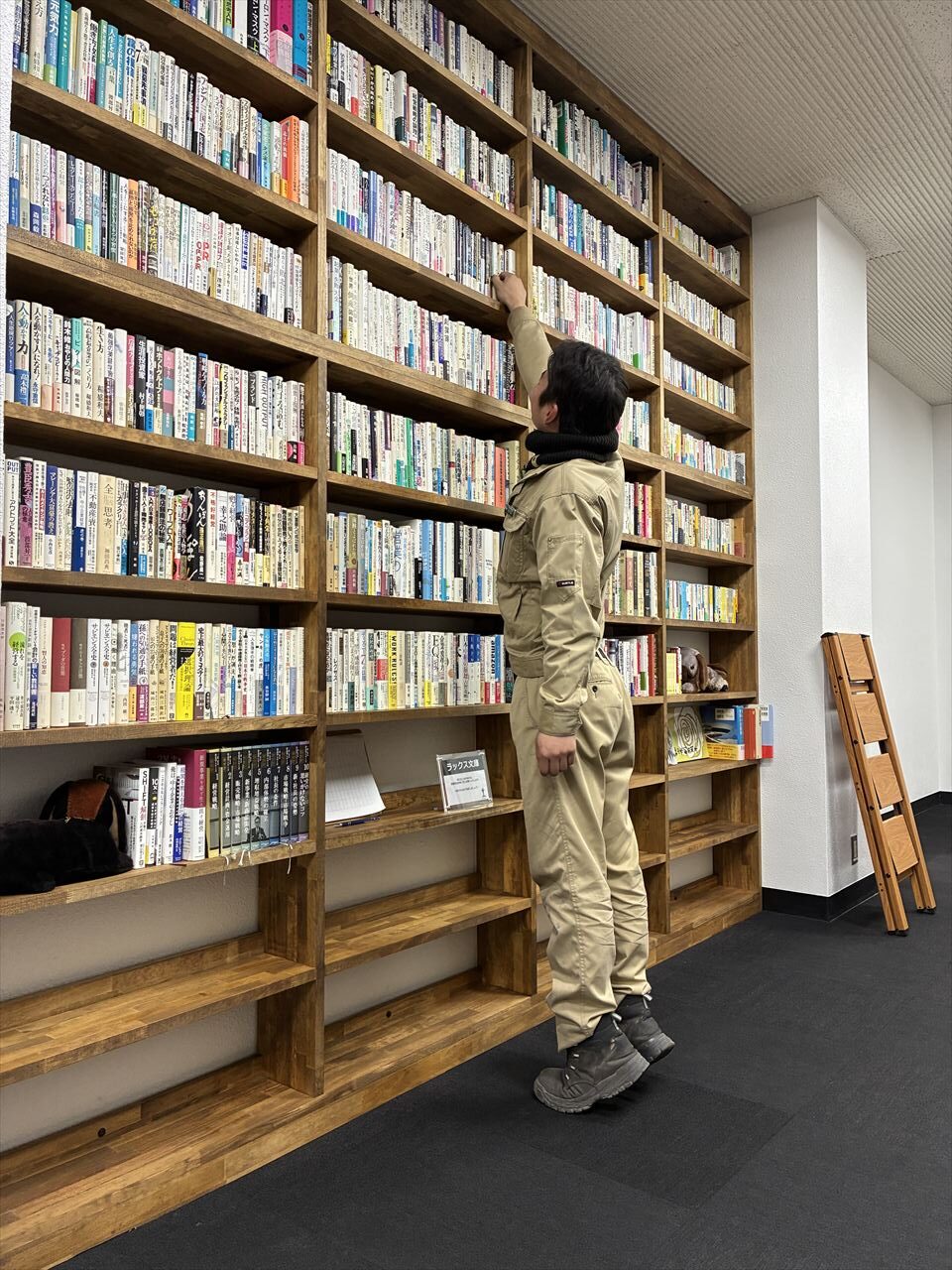 いつの間にか、本棚の雰囲気に合う脚立が用意されていました。