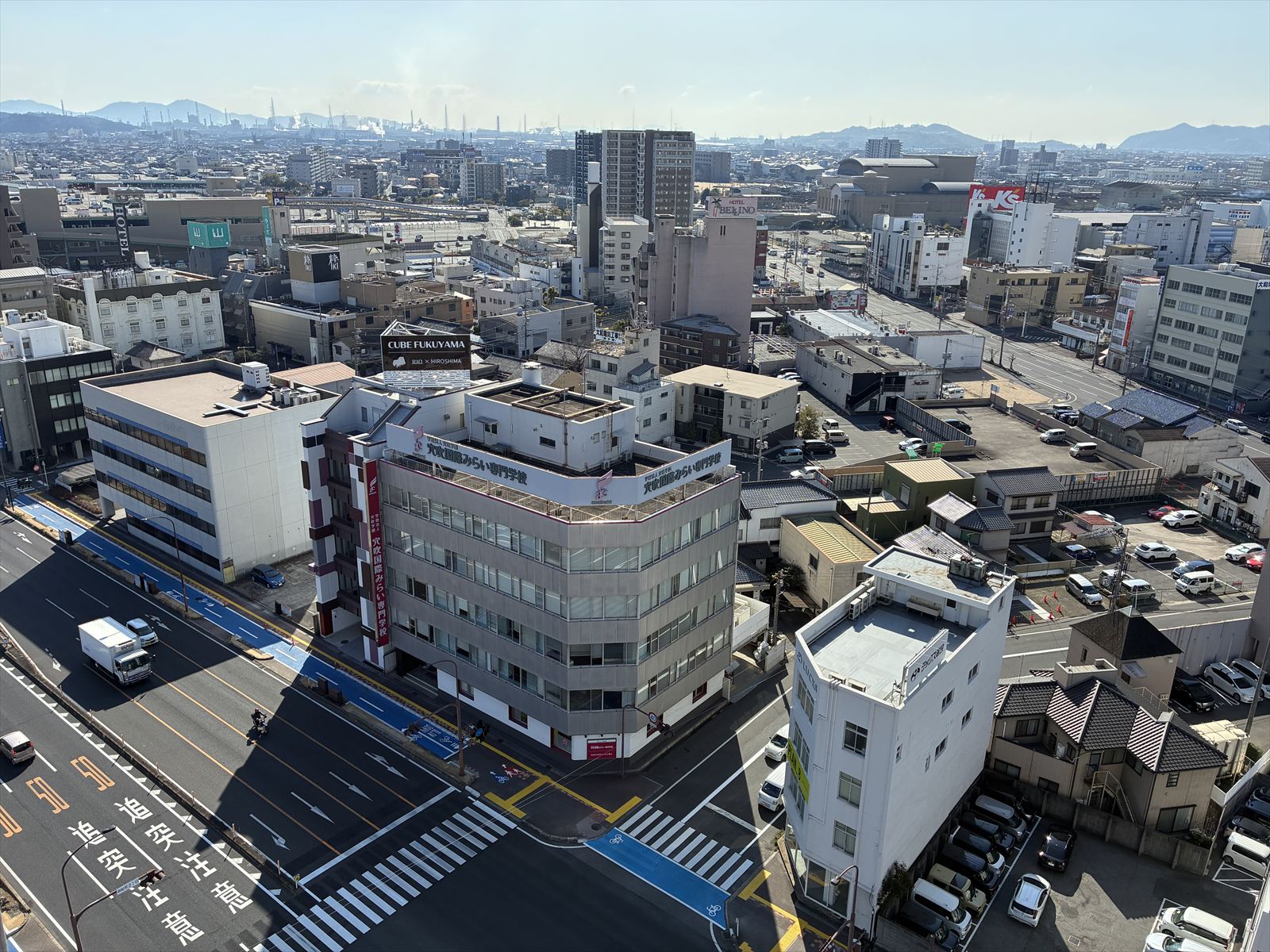 先日完工したCUBE Fukuyamaとラックス第二ビルがこんなに小さく見えます。