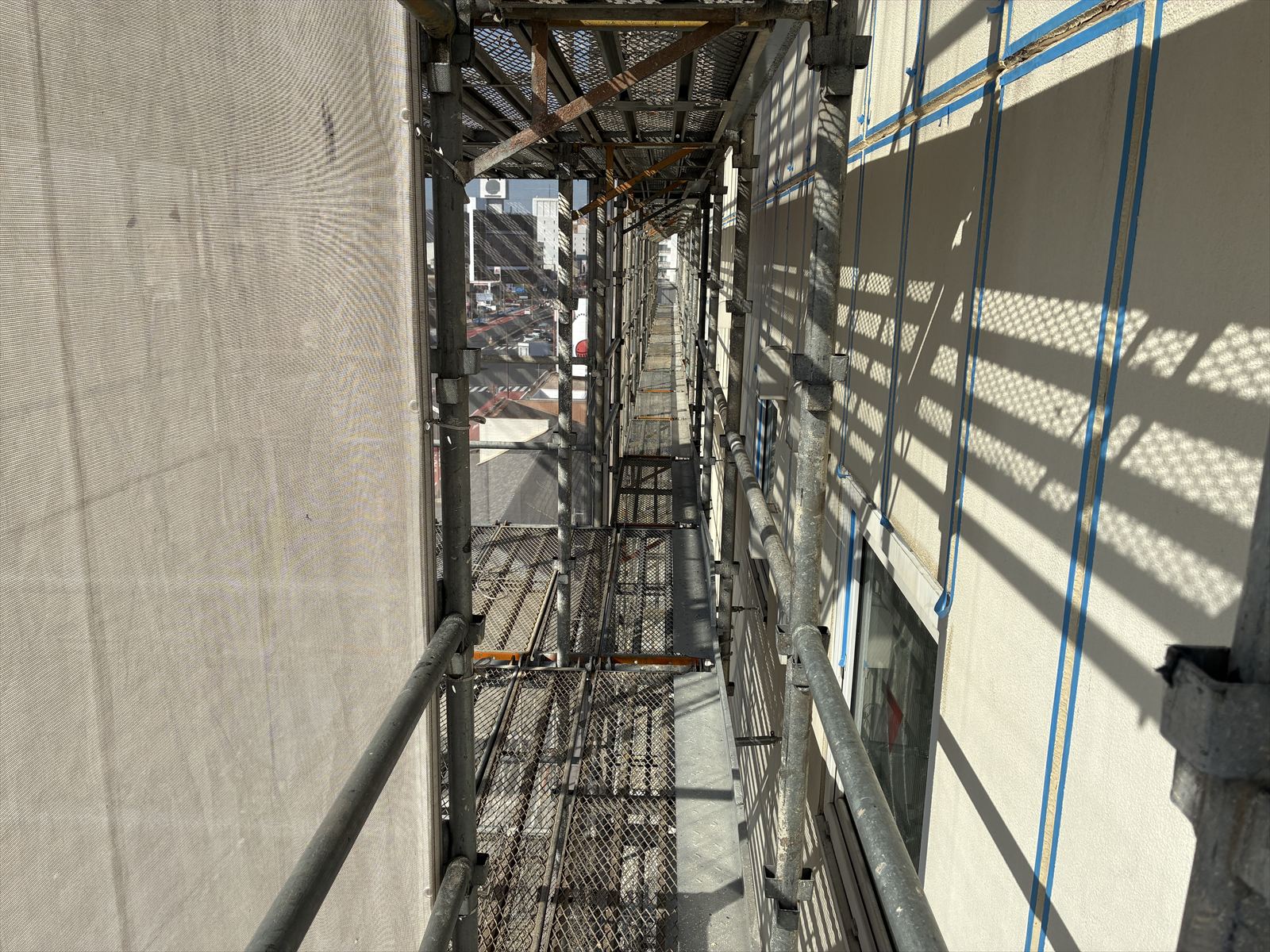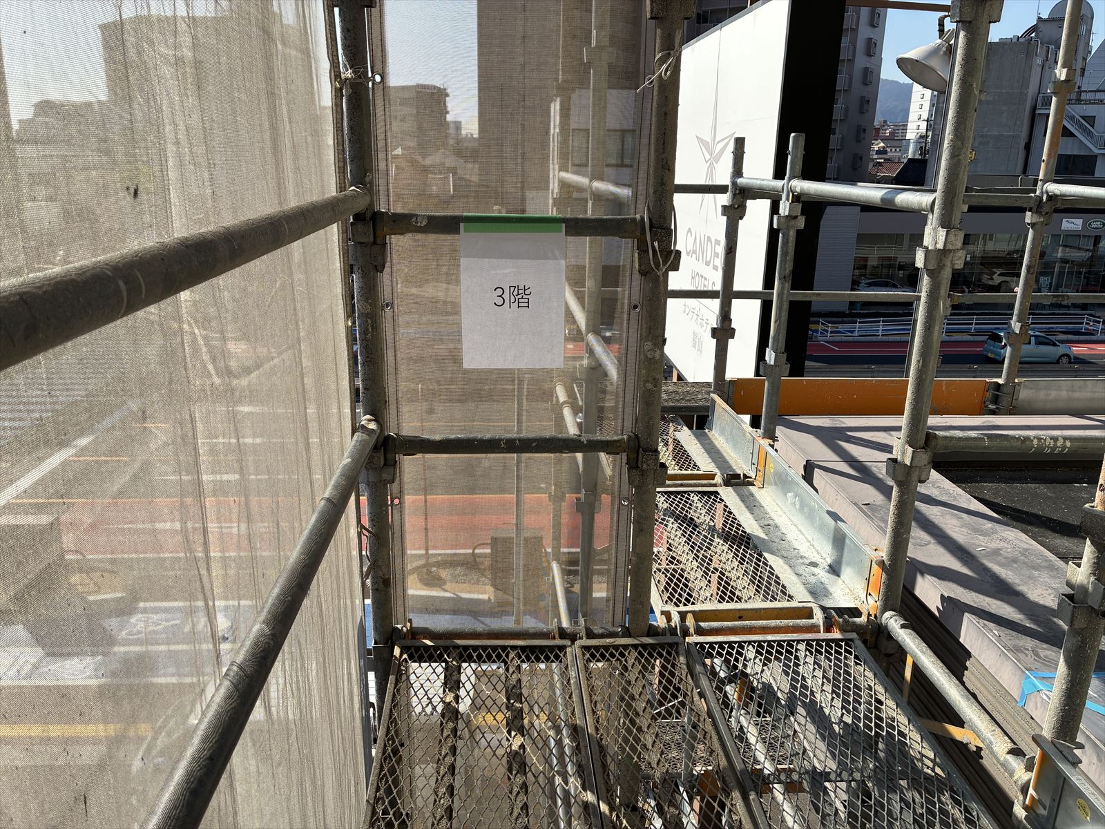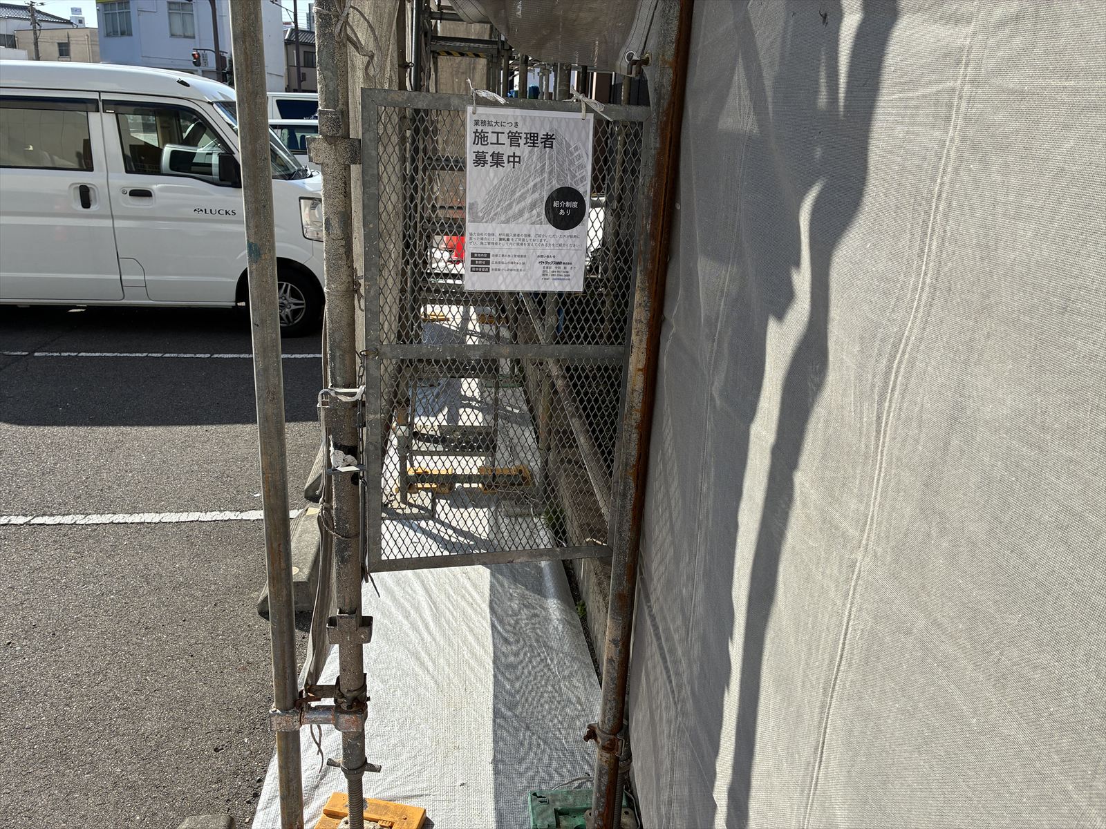 本日、足場組立完了後の点検と、現場状況の確認に行ってきました。