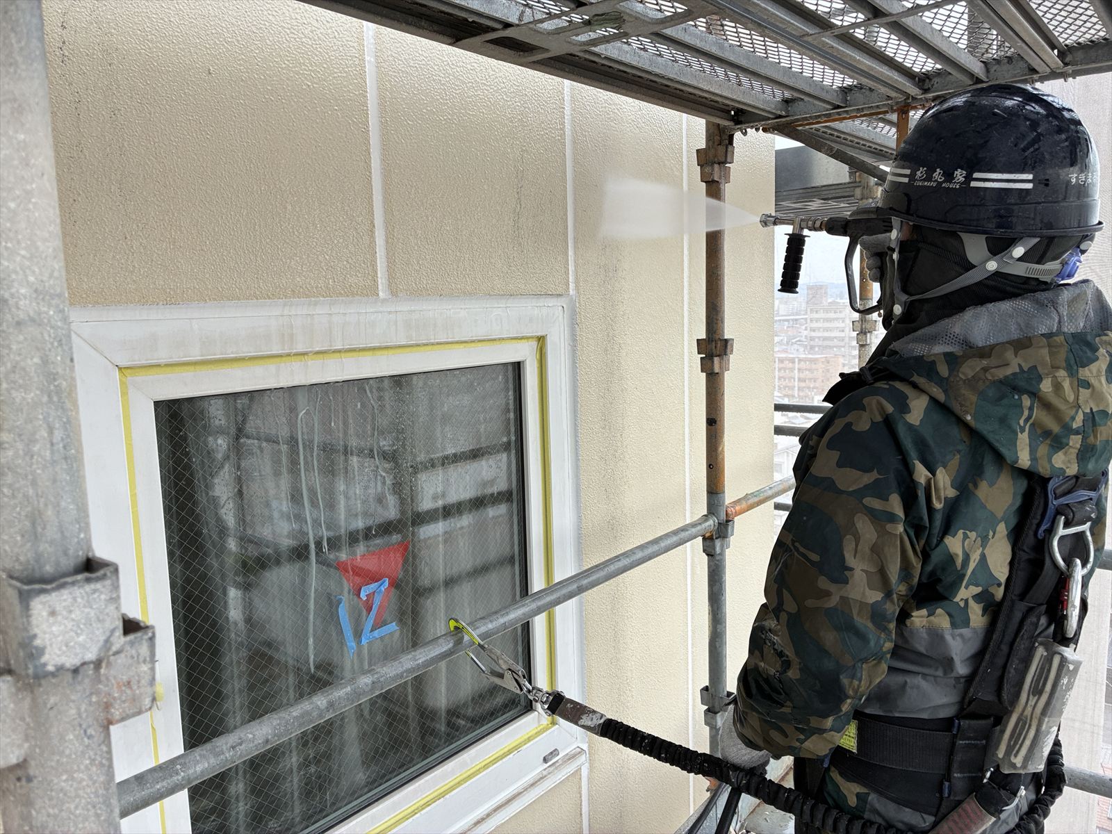 現在、市内ホテルの外壁改修工事を行わせていただいておりますが、