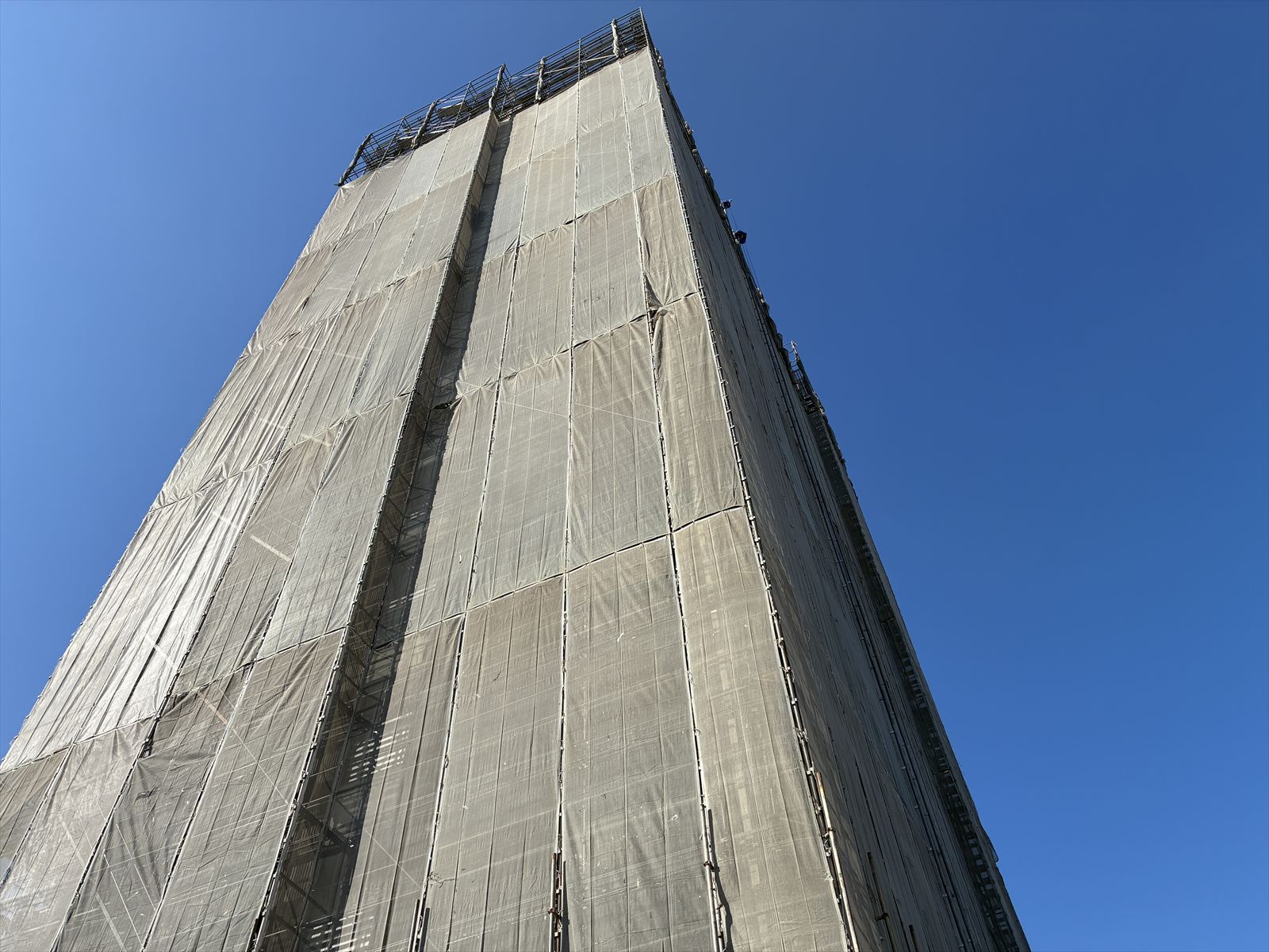 現在、足場の組み立てとメッシュシート張りが行われております。